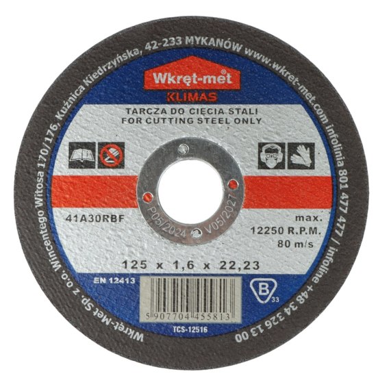TARCZA KORUNDOWA DO CIĘCIA STALI TCS-12516 125 mm WKRĘT-MET KLIMAS