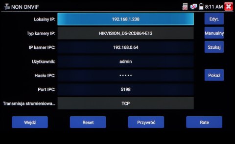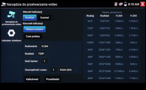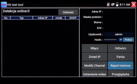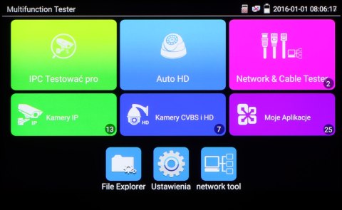 Wielofunkcyjny tester kamer AHD, HD-CVI, HD-TVI, IP, kamer analogowych, Speed Dome (PTZ), wyposażony w wiele dodatkowych funkcji, niezbędnych przy uruchamianiu instalacji CCTV