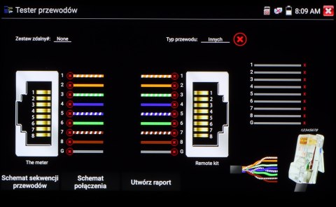 | Test skrętki lub linii telefonicznej: | Test połączenia kabli UTP lub telefonicznych, zakończonych wtykiem RJ-45 |