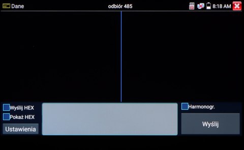 | Test linii RS-485, RS-232: | Testowanie danych z urządzenia sterującego (komendy są wyświetlane hexadecymalnie) |
