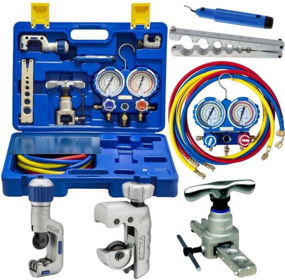 Zestaw narzędzi serwisowych do klimatyzacji z manometrami VALUE VTB-5B-I Set - przeznaczenie i zastosowanie: