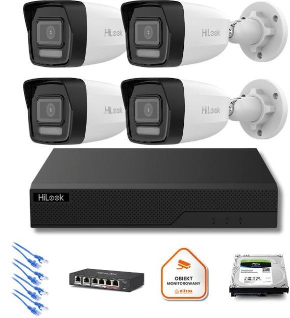 Zestaw monitoringu Hilook 4x kamera IPC-B160HA-LU z dyskiem z 2TB